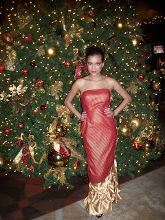 "Candycane" was inspired by the colors of the Christmas season, but created for those who currently live with AIDS and HIV. "Candycane" is the sweet reminder of how anyone, including the ill, can enjoy the season looking glamorous. A great Thank you goes to Britany Parker for Rocking Around the Hotel Contessa Christmas Tree for me. Thanks babe